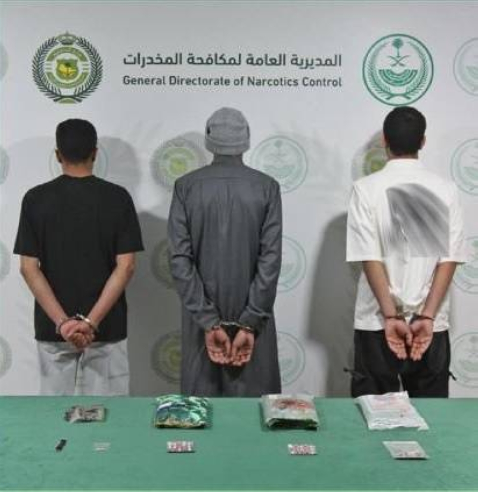 قبضت المديرية العامة لمكافحة المخدرات على 3 مواطنين بمنطقة تبوك لترويجهم مادة الإمفيتامين المخدر، و3.3 كيلوغرام
