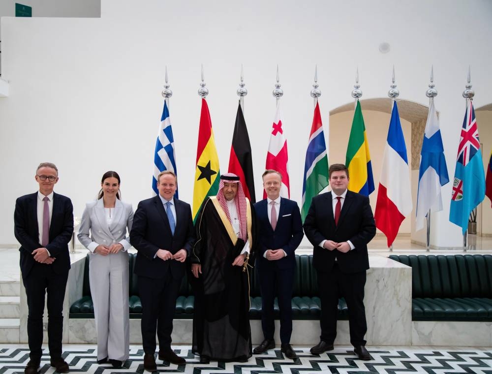 حضر الاستقبال، مدير عام الإدارة العامة لتخطيط السياسات بوزارة الخارجية الدكتور رائد قرملي، ومدير عام الإدارة العامة للدبلوماسية البرلمانية ومؤسسات المجتمع المدني المشرف على إدارة المنتديات والمؤتمرات الدولية الدكتور سليمان محمد العنبر، وسفير جمهورية ألمانيا الاتحادية لدى المملكة ميشائيل كيند سغراب.