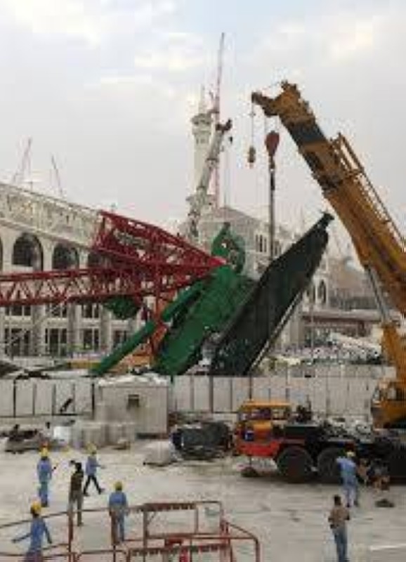 وعلى فرض وجود الإذن ببقاء الرافعة فإنه لم يُتحقق بشكل كاف من جواز بقاء ذراعها مرفوعة وعدم إنزال الذراع نظراً إلى أن زمن حدوث الواقعة كان في فترة موسم الحج وخلال المدة المقررة لإيقاف العمل حفاظاً على الحجاج والمعتمرين وحرصاً على سلامتهم وأمنهم، ولأن مقياس تحديد سرعة الرياح المثبت في الرافعة يتوقف (ينطفئ) عند عدم استخدامها، ولما ورد في كتيب تعليمات الرافعة من وجوب إنزال الذراع لدواعي السلامة إذا لم تكن الظروف الجوية واضحة، وما ورد فيه أن إنزال ذراع الرافعة يتطلب وقتاً كافياً وظروفاً ملائمة.