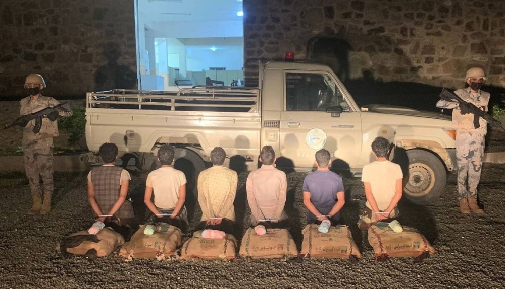 قبضت الدوريات البرية لحرس الحدود في قطاع العارضة بمنطقة جازان على (6) مخالفين لنظام أمن الحدود من الجنسية اليمنية، لتهريبهم (120) كيلوغرامًا من نبات القات المخدر، وجرى استكمال الإجراءات النظامية الأولية بحقهم، وتسليمهم والمضبوطات لجهة الاختصاص.