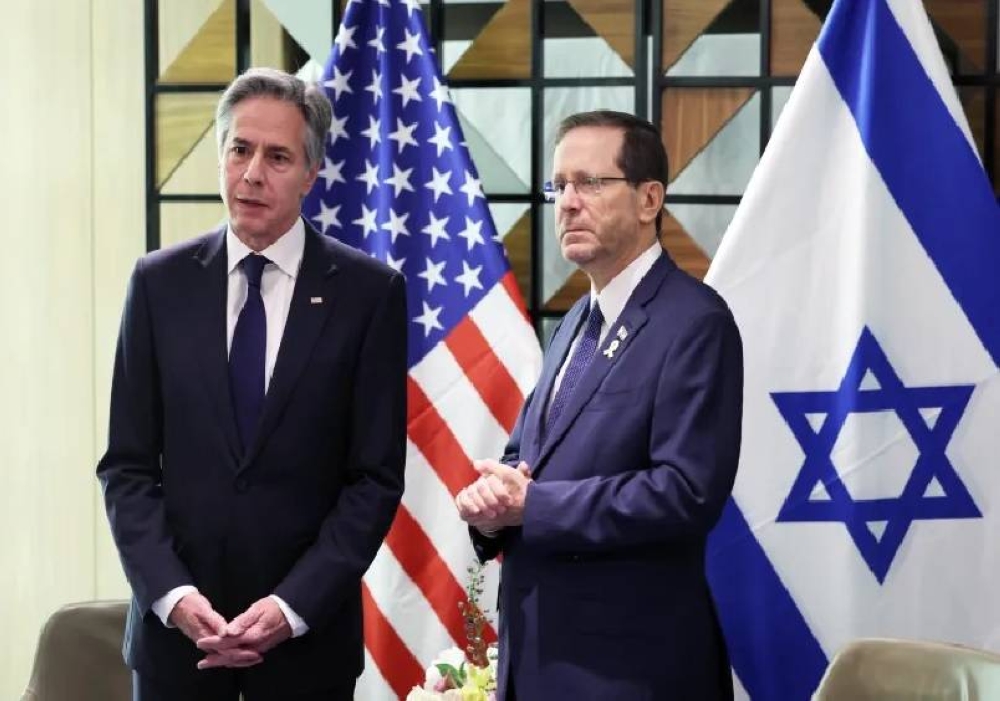 وقال خلال اجتماعه بالرئيس الإسرائيلي إسحاق هرتسوغ في تل أبيب، اليوم (الأربعاء): إن الولايات المتحدة مصممة على التوصل لاتفاق بين إسرائيل وحماس الآن يضمن وقف إطلاق النار وإعادتهم إلى ديارهم. واعتبر أن حماس هي السبب الوحيد لعدم التوصل لاتفاق حتى الآن.