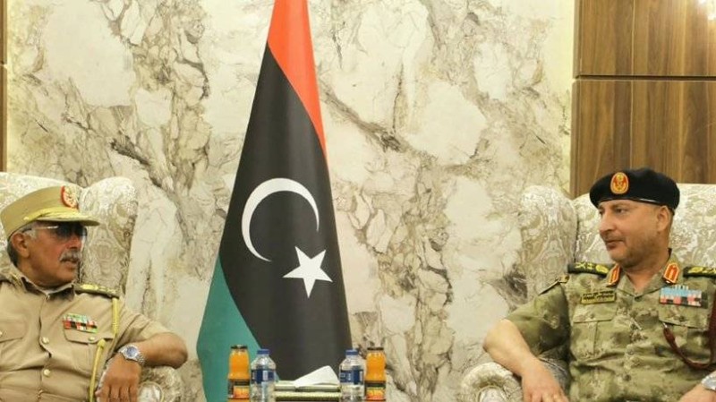 وقالت القيادات العسكرية في بيان مشترك إنها ناقشت ضرورة تسمية رئيس أركان واحد للمؤسسة العسكرية، والشروع تحديدا في الخطوات لتوحيد المؤسسة العسكرية، مبينة أن المحادثات بين وفد يرأسه الفريق أول، عبد الرزاق الناظوري، رئيس أركان قوات المشير خليفة حفتر قائد شرق ليبيا، وآخر برئاسة الفريق أول محمد الحداد، رئيس أركان القوات العسكرية في غرب ليبيا.
