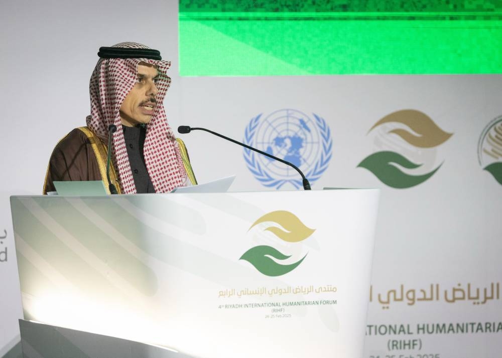 وأشار إلى المبادرات التي أطلقتها المملكة لدعم الشعوب المتضررة، ومنها الحملة الشعبية لإغاثة الأشقاء الفلسطينيين التي بلغت تبرعاتها أكثر من 700 مليون ريال، إضافة إلى مشروع «مسام» لنزع الألغام في اليمن، الذي أسهم في إزالة أكثر من 430 ألف لغم منذ عام 2018.