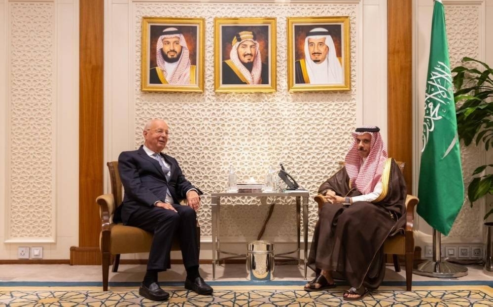 استقبل وزير الخارجية الأمير فيصل بن فرحان بن عبدالله، في مقر الوزارة بالرياض، اليوم (الإثنين)، مؤسس ورئيس المنتدى الاقتصادي العالمي «دافوس» كلاوس شواب.