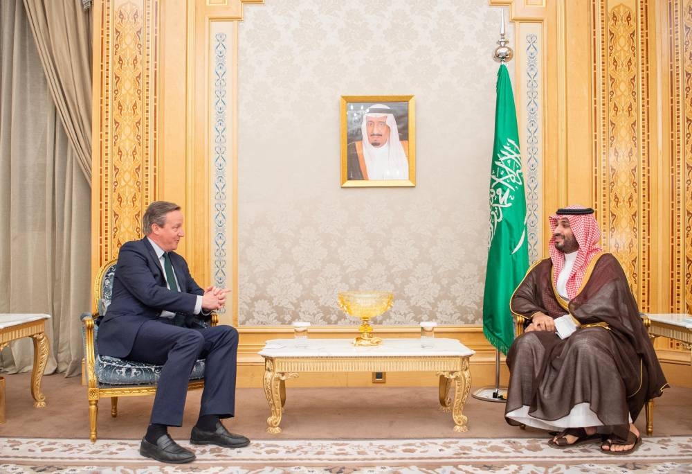استقبل ولي العهد رئيس مجلس الوزراء الأمير محمد بن سلمان بن عبدالعزيز آل سعود، في الرياض اليوم، وزير الخارجية البريطاني ديفيد كاميرون، على هامش الاجتماع الخاص للمنتدى الاقتصادي العالمي المنعقد بالرياض.