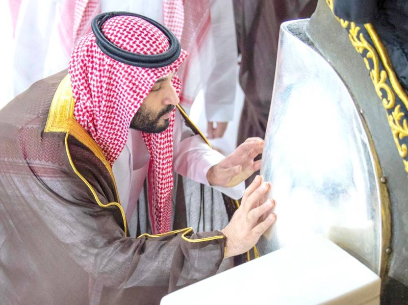 ولدى وصول ولي العهد إلى المسجد الحرام، يرافقه وزير الرياضة الأمير عبدالعزيز بن تركي بن فيصل، وكان في استقباله الرئيس العام لشؤون المسجد الحرام والمسجد النبوي الشيخ الدكتور عبدالرحمن بن عبدالعزيز السديس، طاف بالبيت العتيق وأدى ركعتي الطواف، بعد ذلك توجه إلى داخل الكعبة المشرفة، حيث تشرف بغسلها، ثم أدى ركعتي السنة.