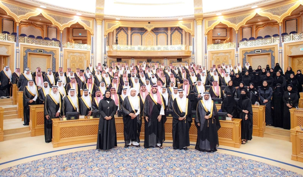 يطيب لي أن أعرض لكم بإيجاز بأنه صدر عن مجلس الشورى، خلال السنة الماضية، وهي السنة الرابعة من الدورة الثامنة للمجلس، 492 قراراً في مختلف الموضوعات التي يدرسها المجلس، منها 58 قراراً تتعلق بمشروعات الأنظمة واللوائح، و240 قراراً تتعلق بالمعاهدات والاتفاقيات الدولية، و194 قراراً تتعلق بتقارير الأجهزة الحكومية، وغيرها مما يدخل في اختصاص المجلس ومهماته.