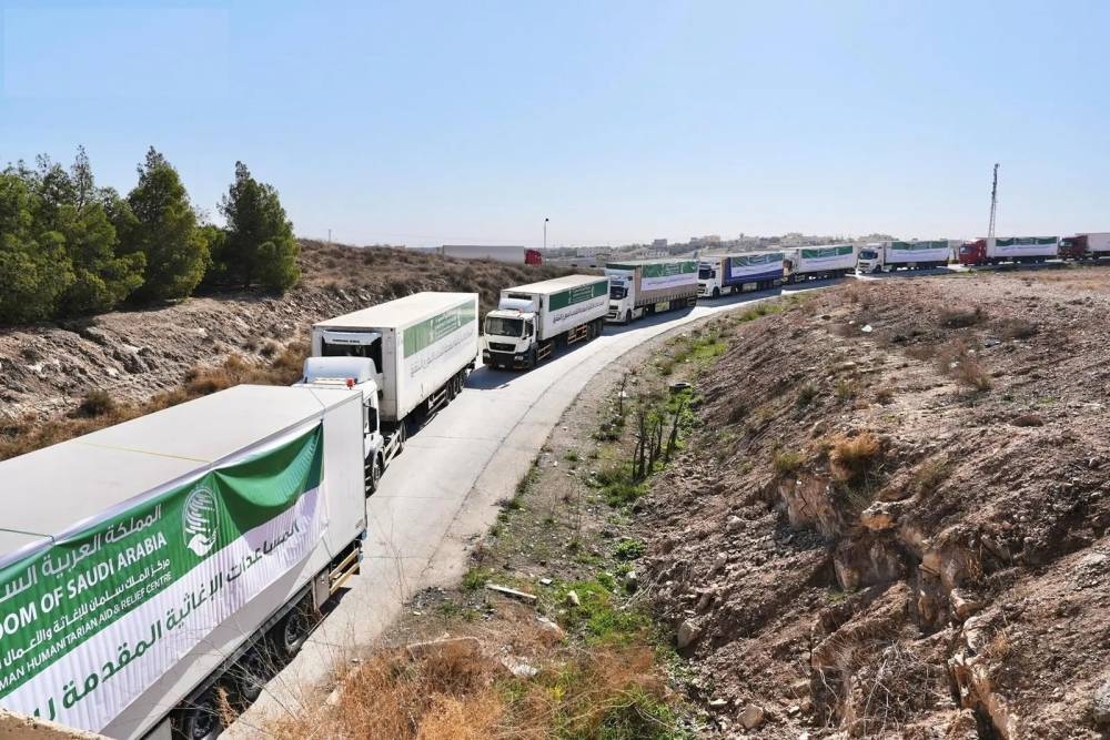 60 شاحنة إغاثة سعودية تعبر منفذ جابر الأردني إلى سورية