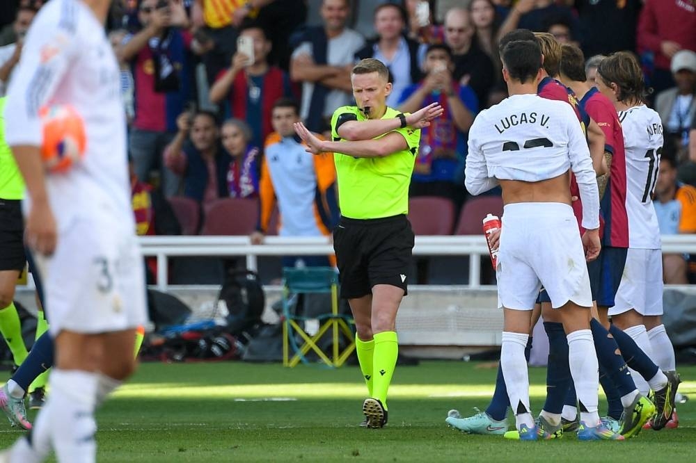 ودار حوار بين الحكم أليخاندرو هيرنانديز وزميله حكم غرفة (الفار) خوان مارتينيس مونوريا أثناء تشريح الحالة التحكيمية للهدف الخامس الذي أحرزه لاعب برشلونة الشاب فيرمين، وألغاه الحكم لاحقاً بداعي وجود لمسة يد على اللاعب خلال طريقه للمرمى، الأمر الذي دفع الكثير من أنصار «البلوغرانا» للتشكيك في نزاهة التحكيم الإسباني، معتبرين أن برشلونة لولا القرارات التحكيمية غير العادلة -على حد وصفهم عبر منصات التواصل- لكان قد أنهى «الكلاسيكو» بنتيجة تاريخية، خصوصاً أن الحكم حرم الفريق أيضاً من ضربة جزاء إثر اصطدام الكرة في يد مدافع ريال مدريد الفرنسي تشواميني وهي في طريقها للمرمى.