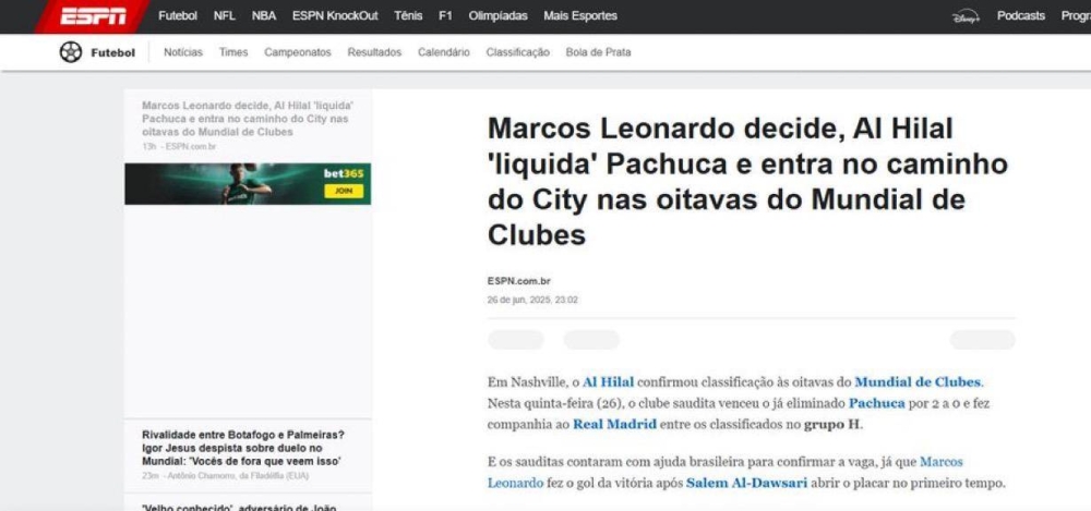 وعلقت صحيفة «سبورت الإسبانية»: «الهلال‬⁩ وضع نفسه أمام مانشستر سيتي في ثمن نهائي كأس العالم للأندية 2025، والمدرب إنزاغي سيواجه فريق غوارديولا الذي لم يخسر في دور المجموعات»، وأضافت صحيفة «ماركا الإسبانية»: «تأهل الهلال إلى الدور القادم كان مستحقاً، والمباراة القادمة أمام مانشستر سيتي ستكون بمثابة التحدي الكبير للهلال، وليس مستحيلاً أن يحقق الفوز في الدور القادم بدليل عدم خسارته في دور المجموعات».