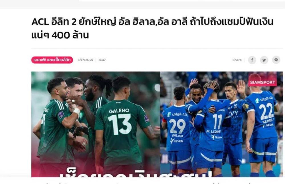 موقع «siamsport» التايلندي علّق قائلا: «الهلال سيواجه غوانغجو الكوري الجنوبي»، مؤكدا أن الهلال هو الأقوى في آسيا. وأضاف الموقع: «الأهلي سيواجه فريق بوريرام التايلندي، وهذه المواجهة ستكون أسهل من مواجهة الهلال بالنسبة لفريق الأهلي الذي يملك نجوما عالميين».