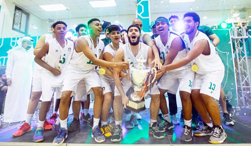 توج رئيس الاتحاد السعودي لكرة السلة الدكتور غسان طاشكندي فريق الأهلي ببطولة دوري شباب الممتاز لكرة السلة في ختام