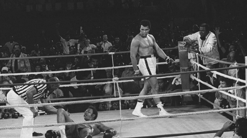 بدأ قتال الغاب.. واستدرج محمد علي كلاي خصمه فورمان إلى وسط البحر.. ثم أغرقه بالضربة القاضية.. في لحظة صنفت أنها أعظم لحظة رياضية في التاريخ على الإطلاق.