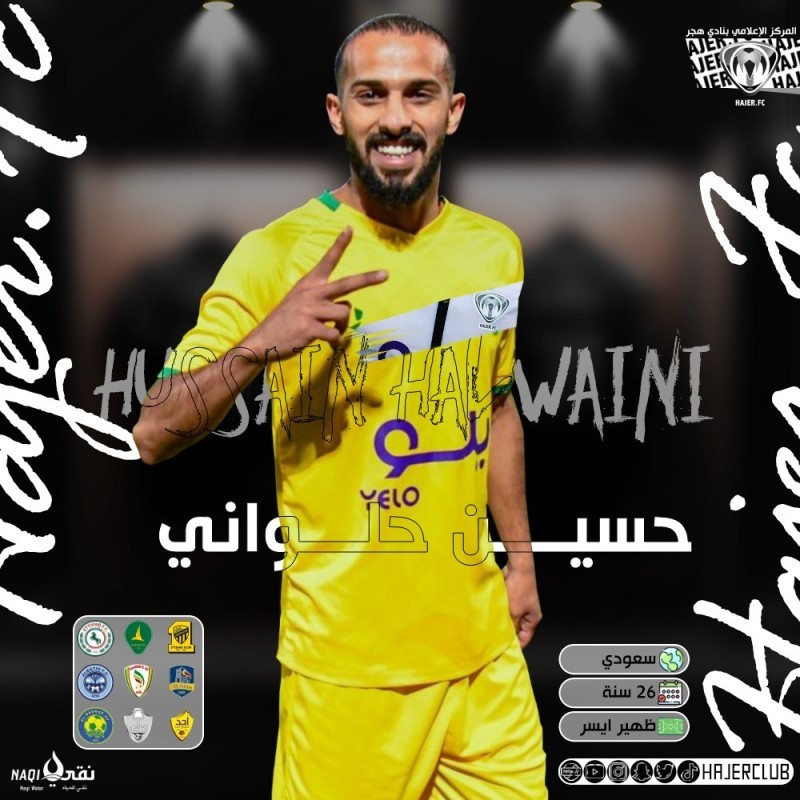 تعاقدت إدارة نادي هجر برئاسة حمد العريفي مع لاعب الظهير الأيسر حسين حلواني، وذلك لتمثيل الفريق الأول لكرة القدم