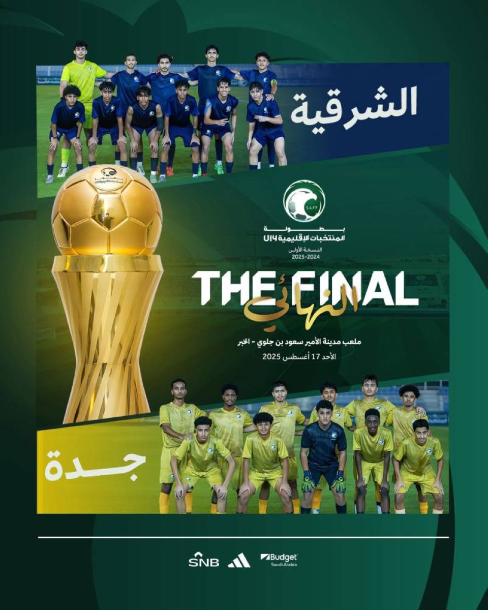 تستعد جماهير كرة القدم في المملكة العربية السعودية لمتابعة المباراة النهائية المرتقبة لبطولة المنتخبات الإقليمية تحت 14 عاماً، التي تُقام لأول مرة بتنظيم من الاتحاد السعودي لكرة القدم. وقد تأهل منتخبا الشرقية وجدة إلى النهائي بعد عروض قوية ومثيرة، حيث سيتواجهان يوم الأحد عند الساعة 8.30 مساءً على ملعب مدينة الأمير سعود بن جلوي في الخبر.